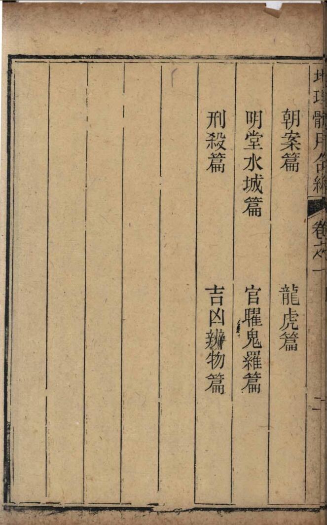 内容包括:龙穴要言、龙法篇、穴法篇、五星篇、生剋篇、朝案篇、龙虎篇、明堂水城篇、官曜鬼罗篇 、刑殺篇、吉凶辨物篇……