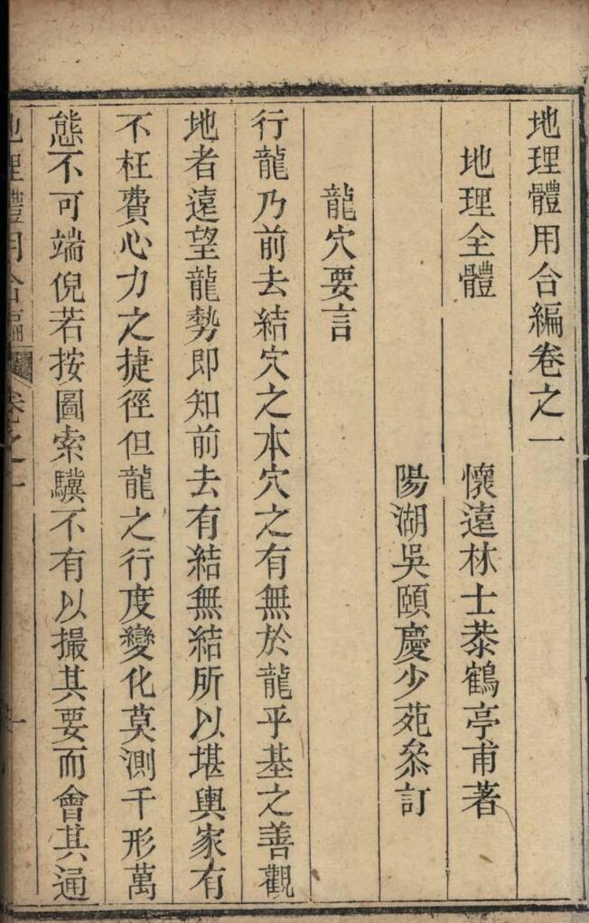 地理全体大用合编》清同治元年刻本,清代林鹤亭和吴少苑合著,该书最初刻印于清同治元年,共分为四卷,其中前三卷为《地理全体》最后一卷为《地理大用》是很重要的一部堪舆经典著作。