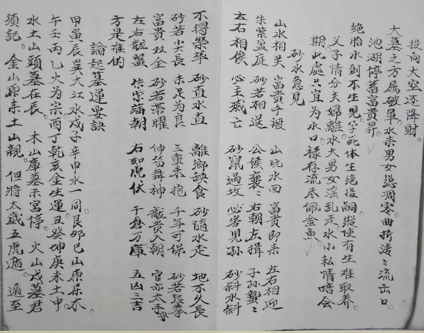 秘传廿四砂兼杂水法、断水法、砂水急见、论起墓運要诀、廿四向山相空缺主生白蚁诀、窝钳乳突、释蝉翼砂、论择地十要、论廿四好、论廿四怕、立穴十要论、解十二倒仗法、论九星、论开山尅应验、楊公望门断、罗经分金备要、滚盘珠杨公362龙形捷要点穴、何知经、祭圹开山一宗、咒龙赞语、斩草一宗、开山咒、灶经妙决、八路地风歌诀、大宋吴景鸾传、论鸾头理气、寸金斗首扶龙讣气、48局定列、哭局要诀、末附秘旨等