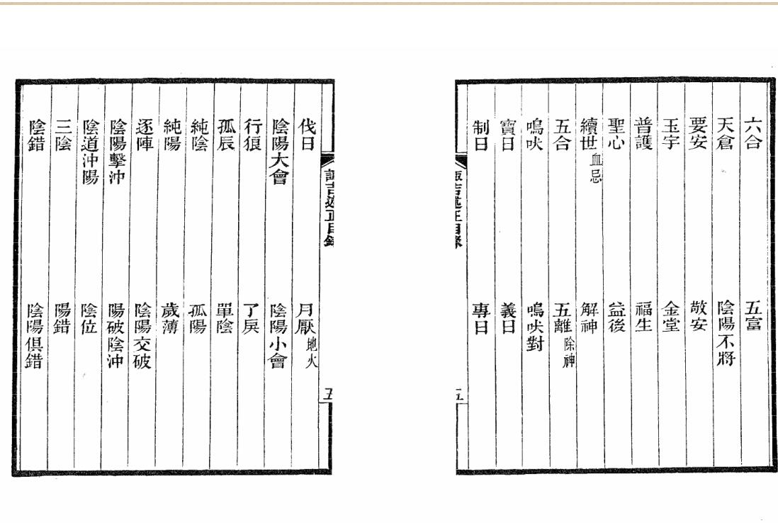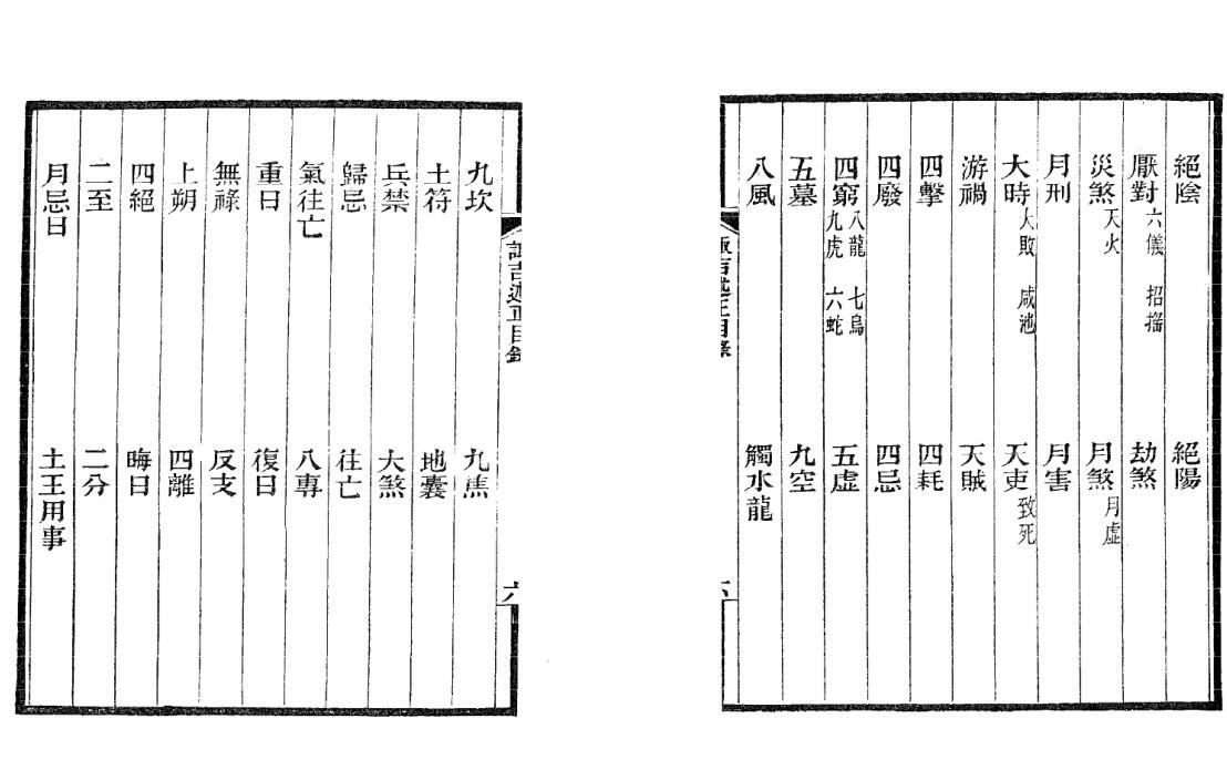 ,年表第九 ,月表第十 ,日表第十一, 时表第十二 ,主命表第十三 ,神煞外第篇十四 ,举事篇第十五 ,亲惑篇第十六 ,六壬篇第十七