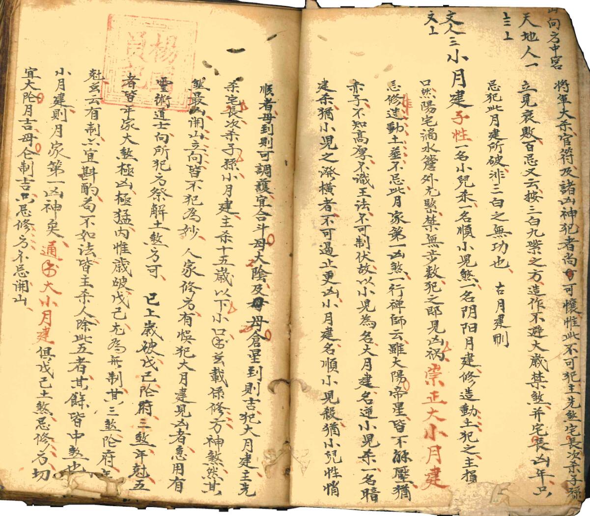 【上册】内容:修方召吉神、年家凶神起例、九良煞、修方避凶杀、月家吉神起例指掌、太阳合朔到山等月家都天,共抄78页筒子页。