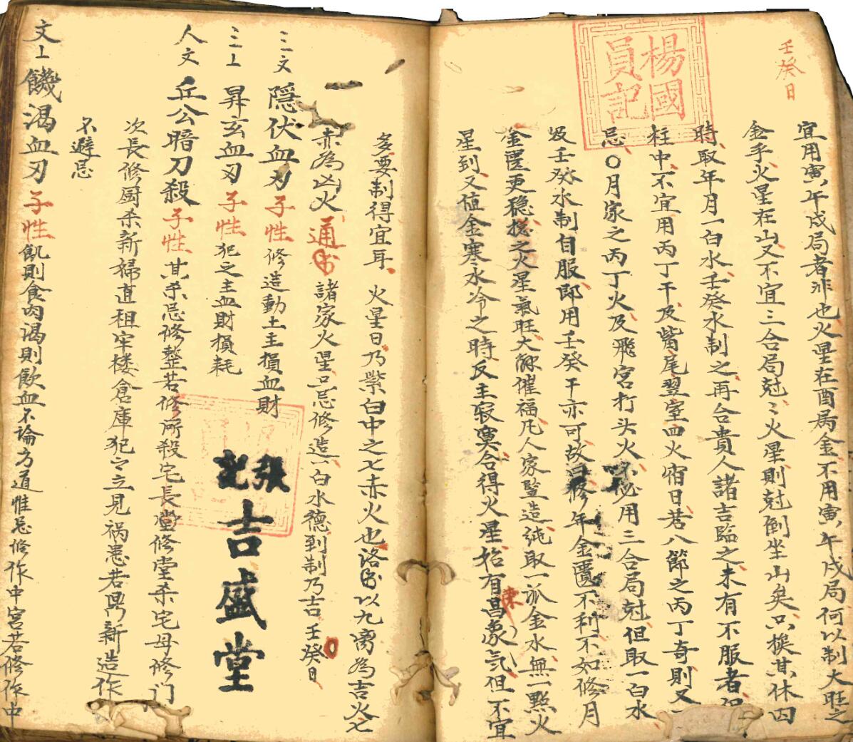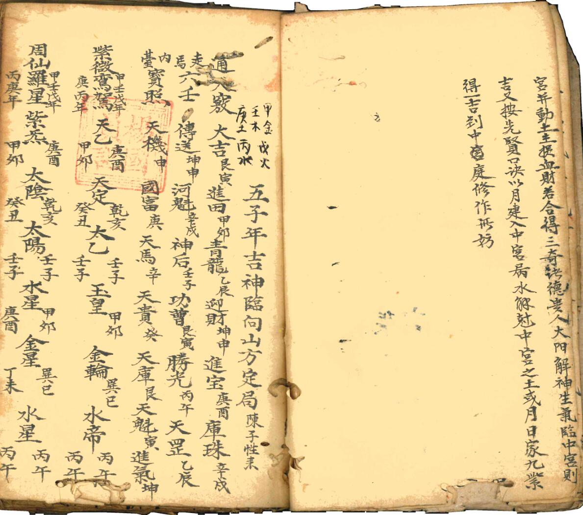 【中册】内容:天星地曜、大岁押起例、消灭煞、本命灾杀都天、六十甲子坐山方位、日家凶神、雷霆白氘占中宫日等,共抄79页筒子页。