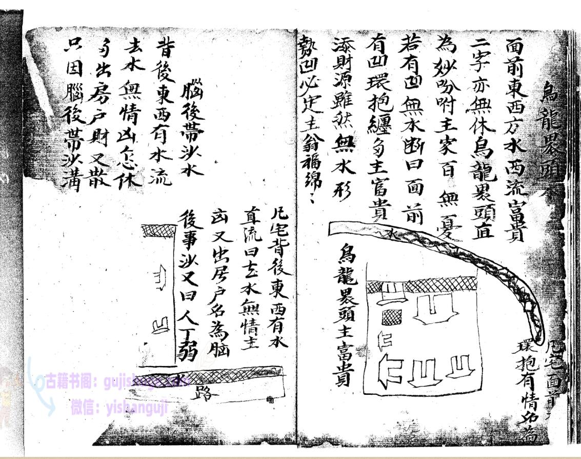 论水方位,凡水来者有吉凶,二十四方各分阴阳子癸丑山属阴以阳论之,艮寅卯乙辰己丙皆为阳…………………论聚水方位,水冲城角图例,箭射左路,阳宅外局断,等等