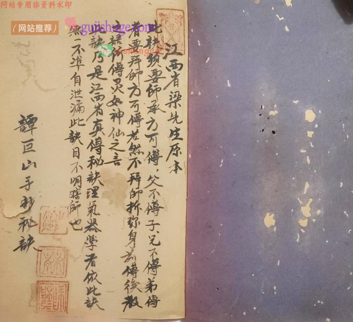 简介:《地理三元紫白秘诀》谭巨山手抄秘诀,江西梁先生原本,民国二十七年抄本。
